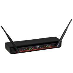Mặt trước có 4 màn hình LED LCD hiển thị tần số và các thông số khác của micro không dây tạo nên sự bắt mắt, trên tay micro không dây cũng có màn hình LED để hiện thì tần số và báo pin rất tiện lợi.