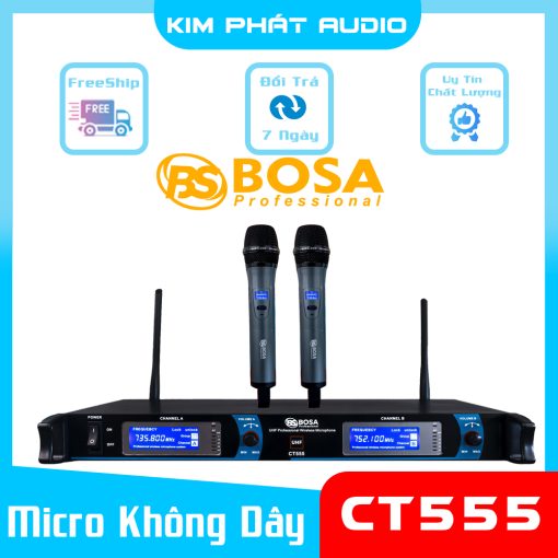 Micro Bosa CT555 là sản phẩm được cải tiến từ thiết kế của Micro không dây Bosa A555, với thiết kế cải tiến tạo nên sự khác biệt và mạnh mẽ hơn cho dàn Karaoke gia đình hoặc các dàn nhạc sống đám cưới hay dàn nhạc sân khấu.