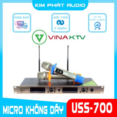 Micro VinaKTV USS-700 tiếp nối thành công của dòng mic không dây USS-700 mà hãng VinaKTV. Kế thừa những tính năng vượt trội USS-700 có sự vượt bậc từ thiết kế, kiểu dáng cho đến công nghệ hiện đại được tích hợp nhằm đáp ứng nhu cầu dùng cho các phòng hát cao cấp, chuyên nghiệp.